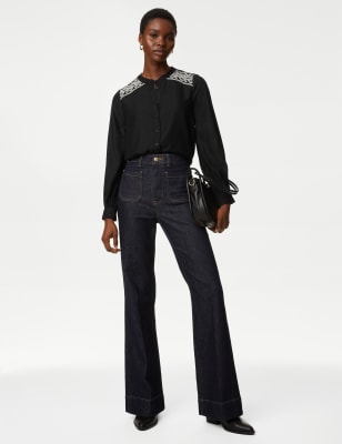 Rechte Katoenen Blouse Met Klassieke Kraag Black Le Temps Des