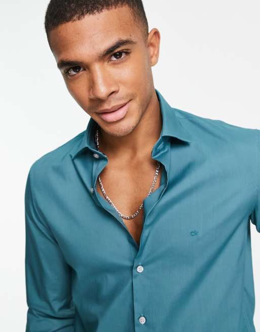 Mint CALVIN KLEIN Klassiek overhemd POPLIN STRETCH SLIM SHIRT Omoda