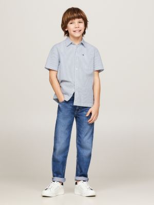 Gestreept seersucker overhemd met korte mouw Blauw Tommy Hilfiger