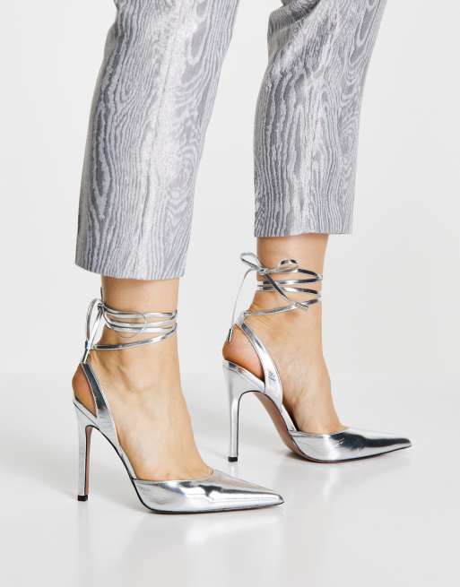 ASOS DESIGN Pally Chaussures talon haut avec lien nouer sur la jambe Argent