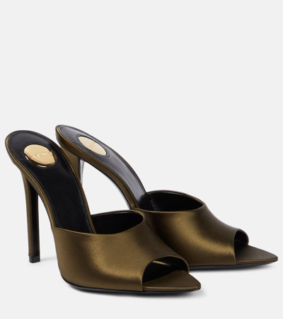 Saint Laurent Women s Goldie Mules In Satin Crepe In Deep Kaki
