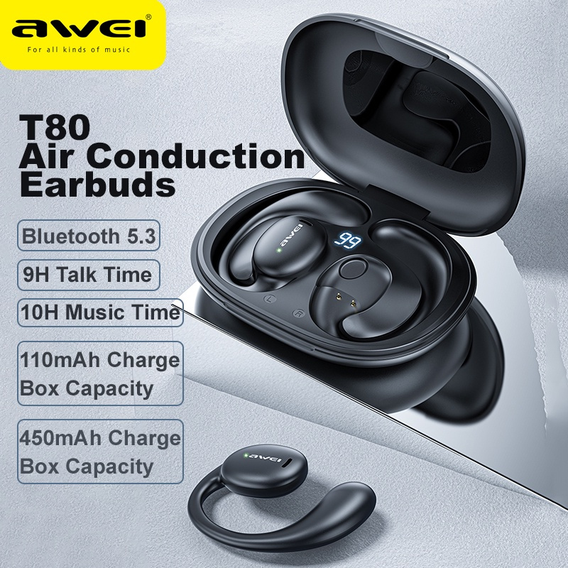 AWEI T80 TWS Wireless Bluetooth V5.3 Air Conduction Sport Gaming