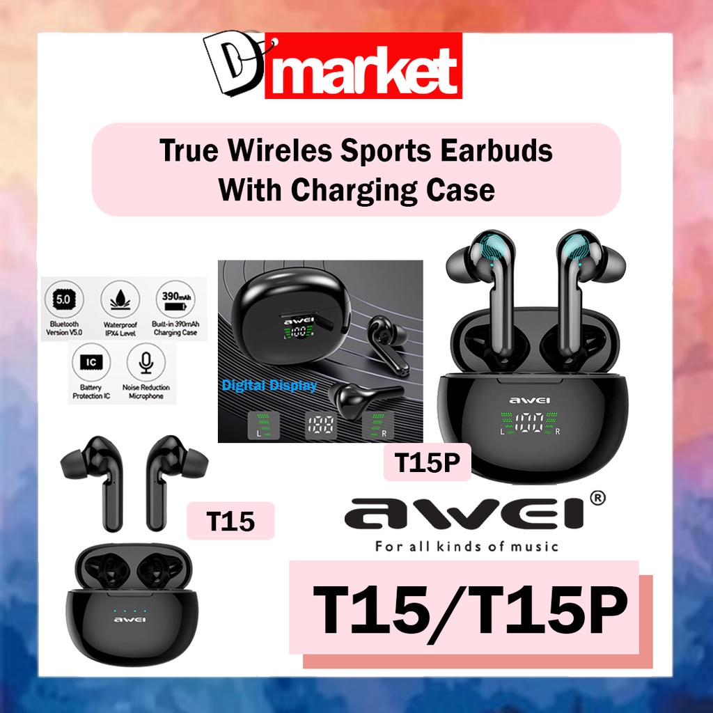 Awei T15 T15P True Wireless Sports Earbuds Bluetooth 5.0