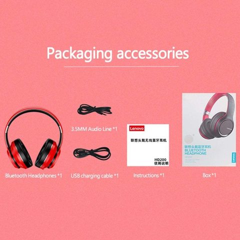 Lenovo HD200 Wireless Headset AUX In Over Ear Gaming Sport Noise Cancelling Voice Call Headphone HIFI Stereo Game Headsets