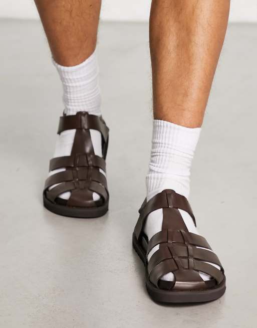 ASOS DESIGN Sandales style p cheur en cuir avec semelle chunky Marron