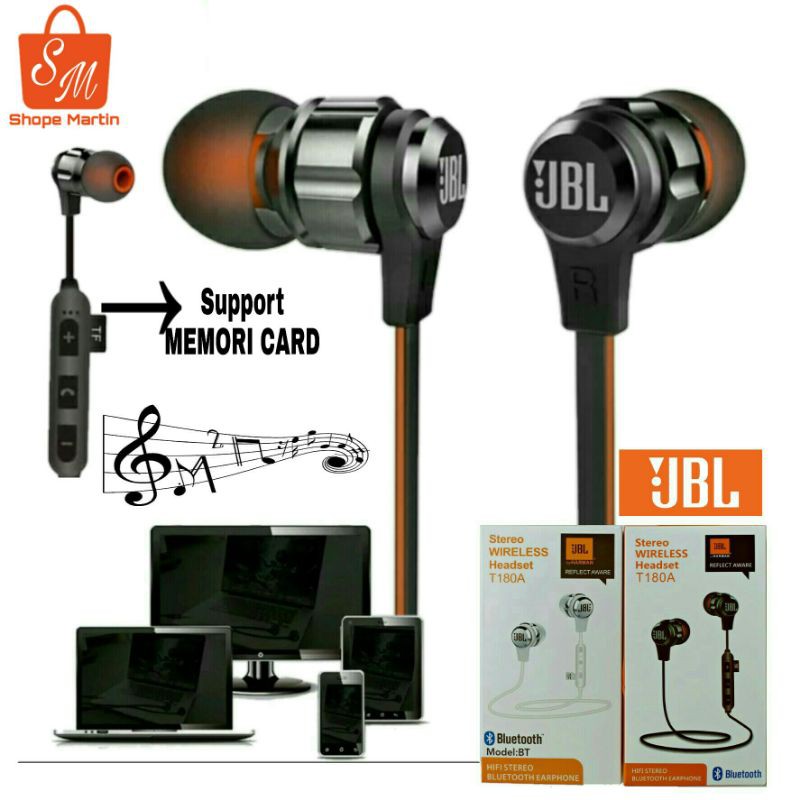 Jual Headset Bluetooth JBL T180A PLUS SLOT MEMORY Earphone