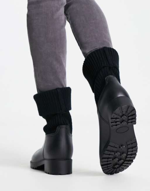 ASOS DESIGN Gabrielle Bottes de pluie avec bordure cheville en maille Noir