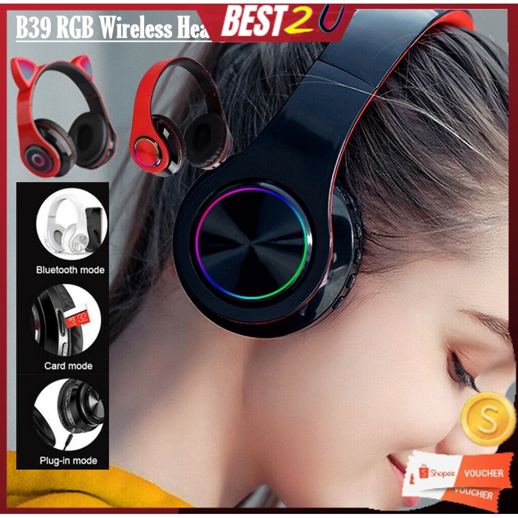 B39 Cat Ear RGB Light Wireless Streamer Gaming Headset With