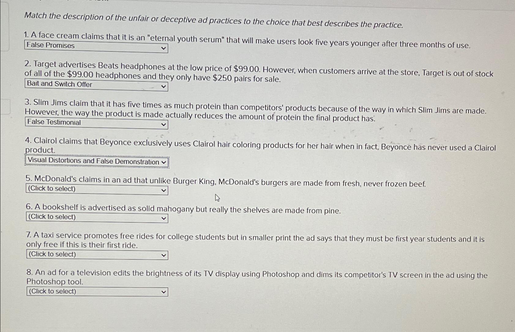 Solved Unfair and Deceptive Practices in AdvertisingUnfair Chegg