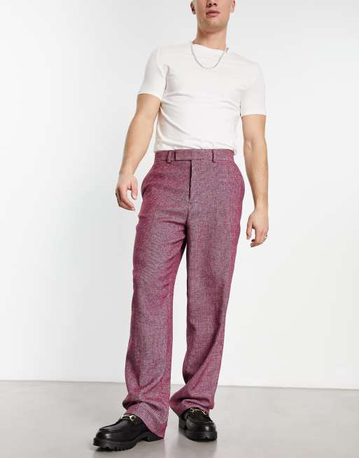 ASOS DESIGN Pantalon large l gant en laine m lang e petit motif pied de poule Bordeaux