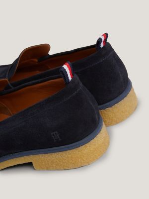 Mocassins en daim monogramme TH Bleu Tommy Hilfiger
