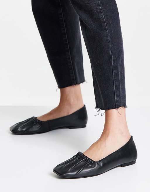 Topshop Libby Chaussures plates en cuir fronc Noir