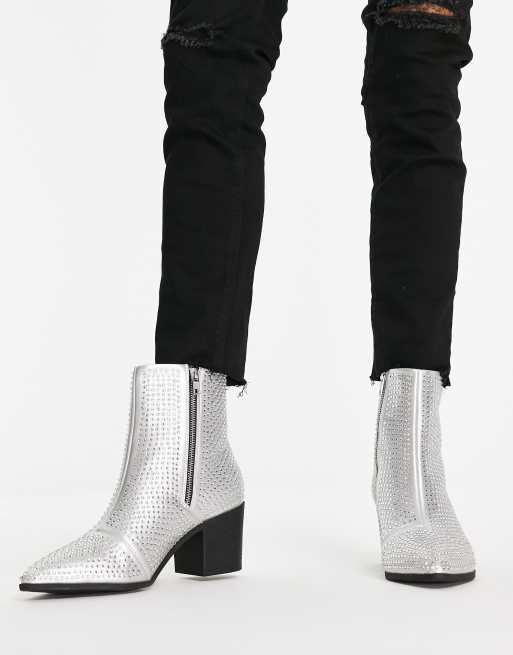 ASOS DESIGN Bottines Chelsea talon et clous strass Argent