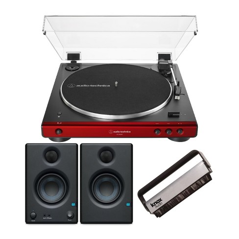 Audio Technica AT LP60X Bluetooth Turntable Red Bundle with Bluetooth Monitors