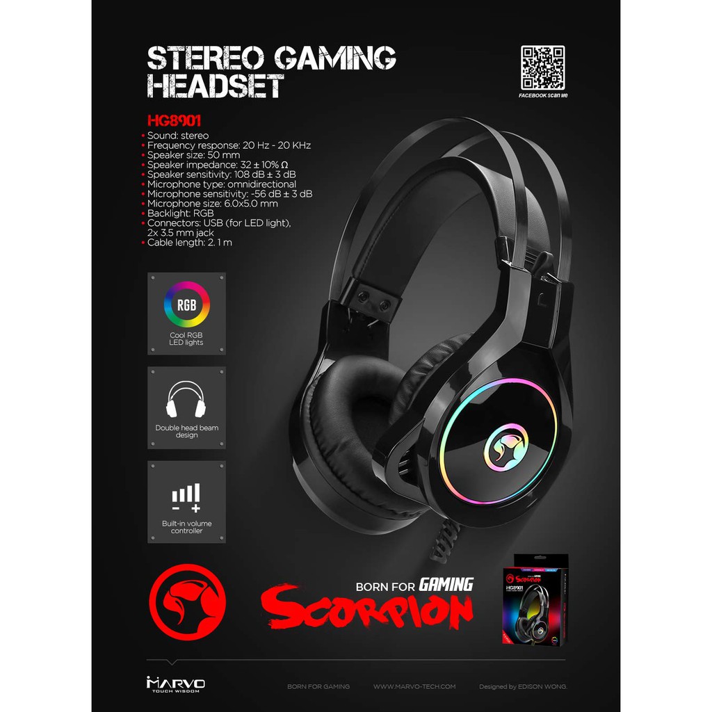 MARVO Scorpion HG8901 Stereo Sound RGB LED Gaming Headset Shopee