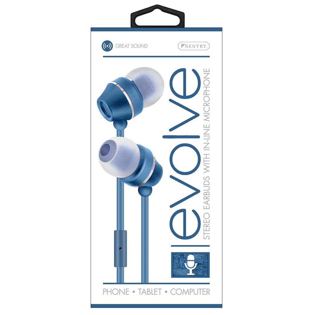 Sentry Evolve Stereo Wired Earbuds with Mic Blue Shop