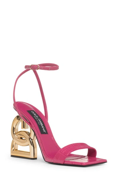 Dolce Gabbana Vernice Logo Heel Ankle Strap Sandal In Pink