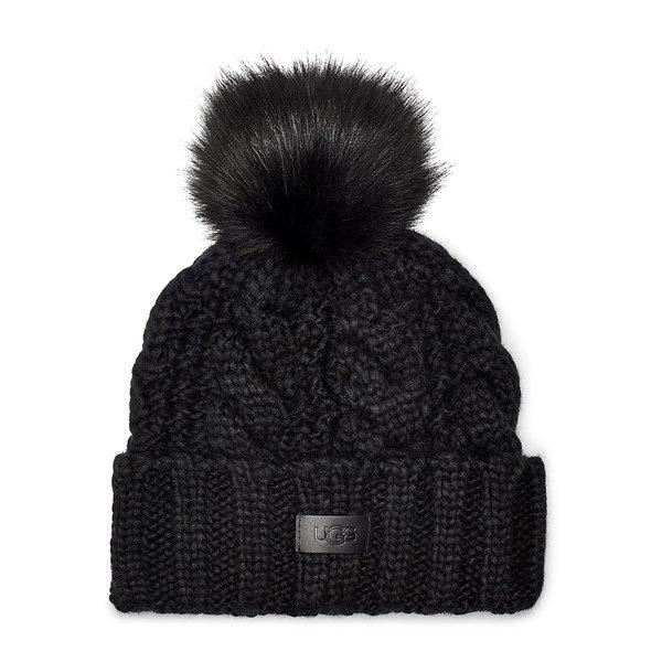 Bonnet outlet ugg noir, W Knit Cable Beanie Faux Fur Pom black 20060 outlet