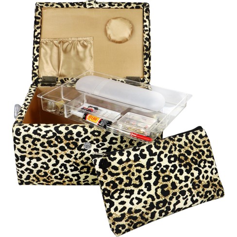 Singer Lg Basket Rolled Edge Leopard Print Matching Zipper Pouch