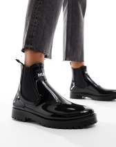 Steve Madden tornado lace up chunky ankle boots in black croc ASOS