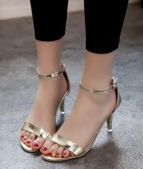 Metallic Open toe Ankle Strap High Heel Sandals Party Heels on Luulla