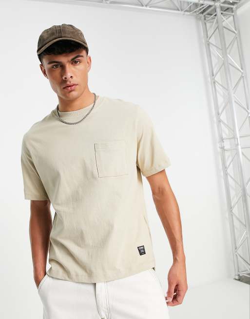Tee shirt pull outlet and bear, Pull Bear oversized t shirt with pocket in beige ASOS outlet