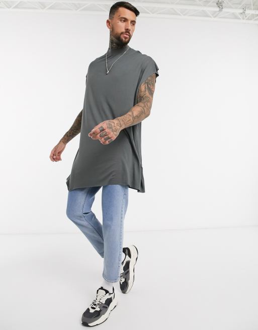 ASOS DESIGN viscose extreme oversized longline sleeveless t shirt in black