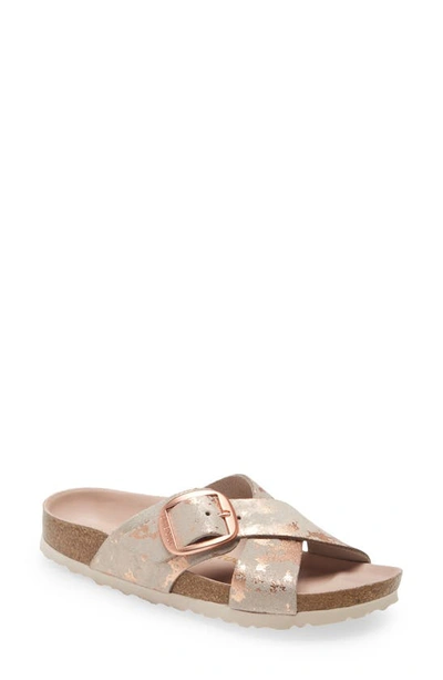 Siena Big Buckle Slide Sandal In Metallic Rose Copper