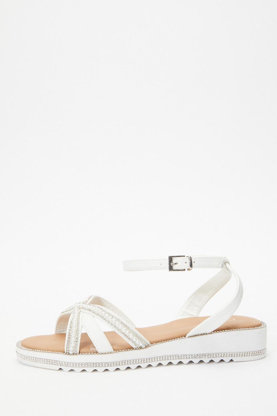 White Alzena Cross Strap Heels The Frou Frou Studio