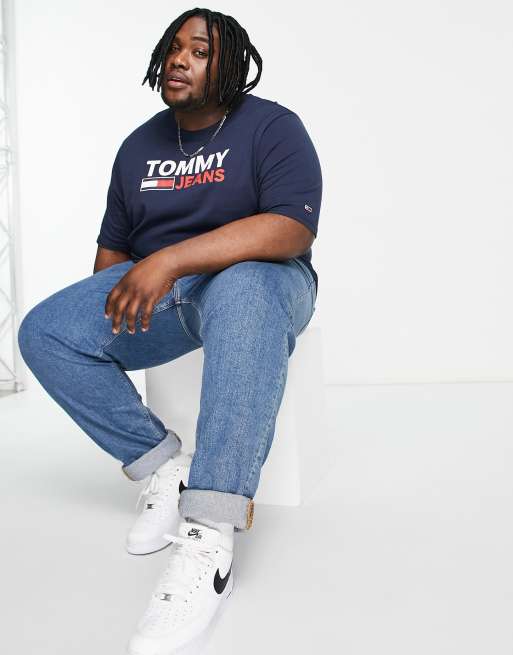 Tommy Jeans Big Tall corp logo T shirt in twilight navy ASOS