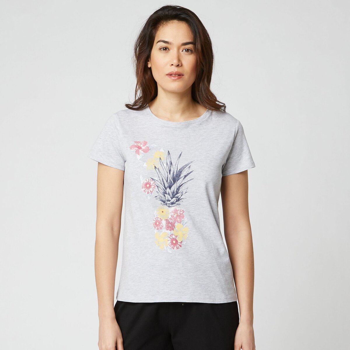 IN EXTENSO T shirt manches courtes gris imprim ananas femme pas