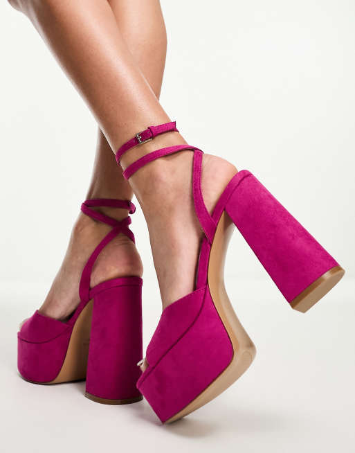 Fuchsia outlet platform sandals, Elma Peep Toe Strappy Block High Heel Platform Sandals in Fuchsia outlet