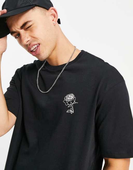 Tee shirt avec outlet une rose, Selected Homme cotton blend oversized t shirt with rose sketch outlet