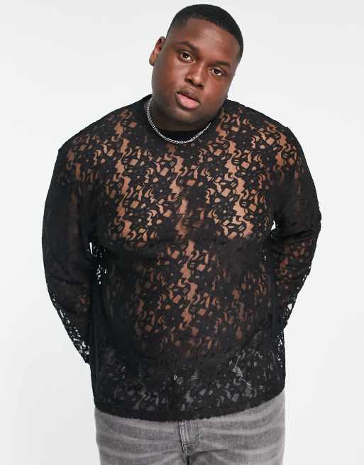 Tee shirt dentelle outlet noire manche longue, ASOS DESIGN T shirt d contract manches longues Dentelle outlet