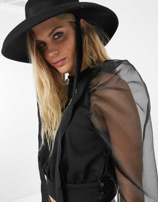Topshop Crop top transparent manches bouffantes Noir