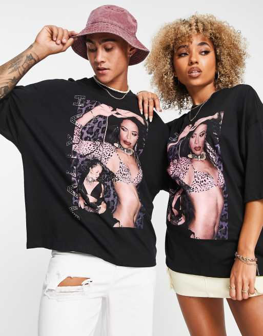 ASOS DESIGN T shirt oversize unisexe imprim Aaliyah avec strass contrecoll s Noir