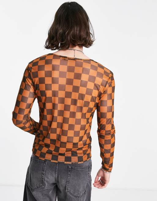2 Minds T shirt en tulle transparent carreaux Marron et orange