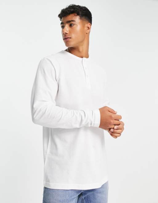 Selected Homme T shirt manches longues avec col grand p re Blanc