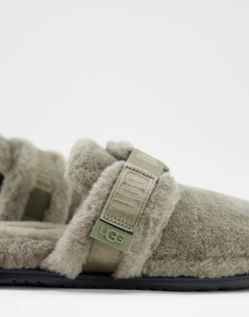 Ugg fluff it sheepskin slippers in olive green ASOS