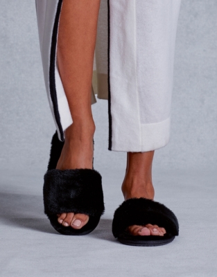 Faux fur strap outlet slider slippers white company, Faux Fur Slider Slippers Nightwear Robes Sale The White outlet
