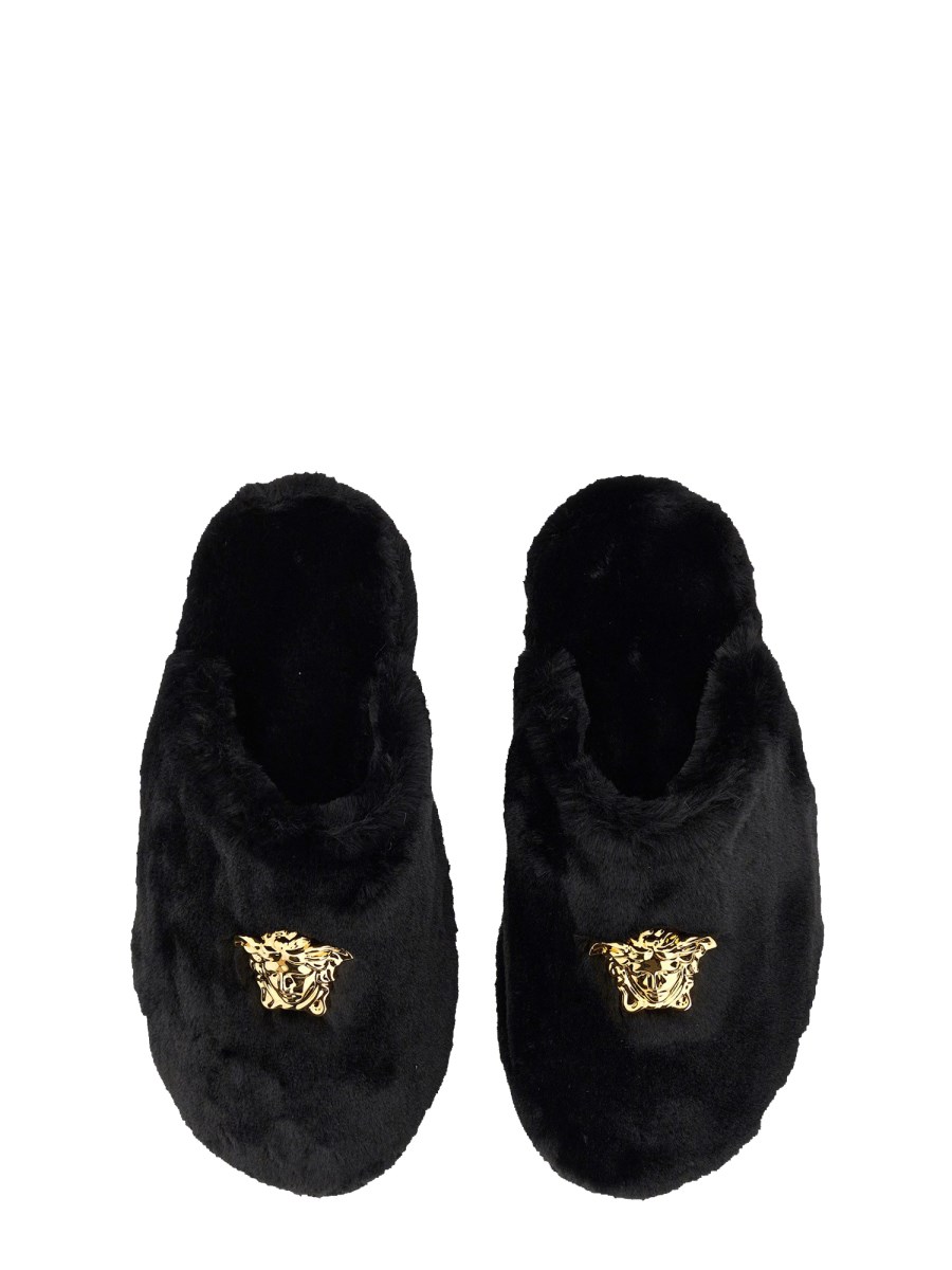 VERSACE LA MEDUSA FAUX FUR SLIPPERS Eleonora Bonucci