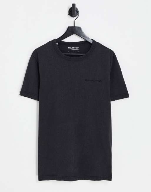 T shirt outlet noir délavé, Selected Homme T shirt logo brod Noir d lav outlet