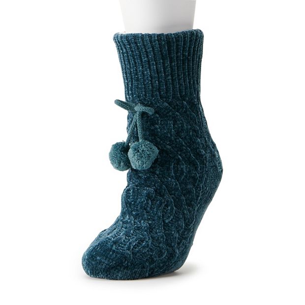Women s LC Lauren Conrad Chenille Cable Slipper Sock with Poms