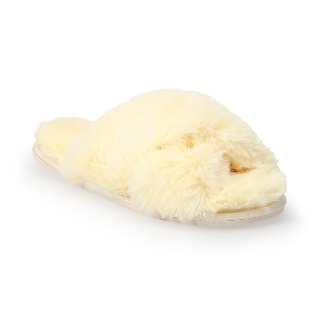 Women s LC Lauren Conrad Cross Faux Fur Slide Slippers