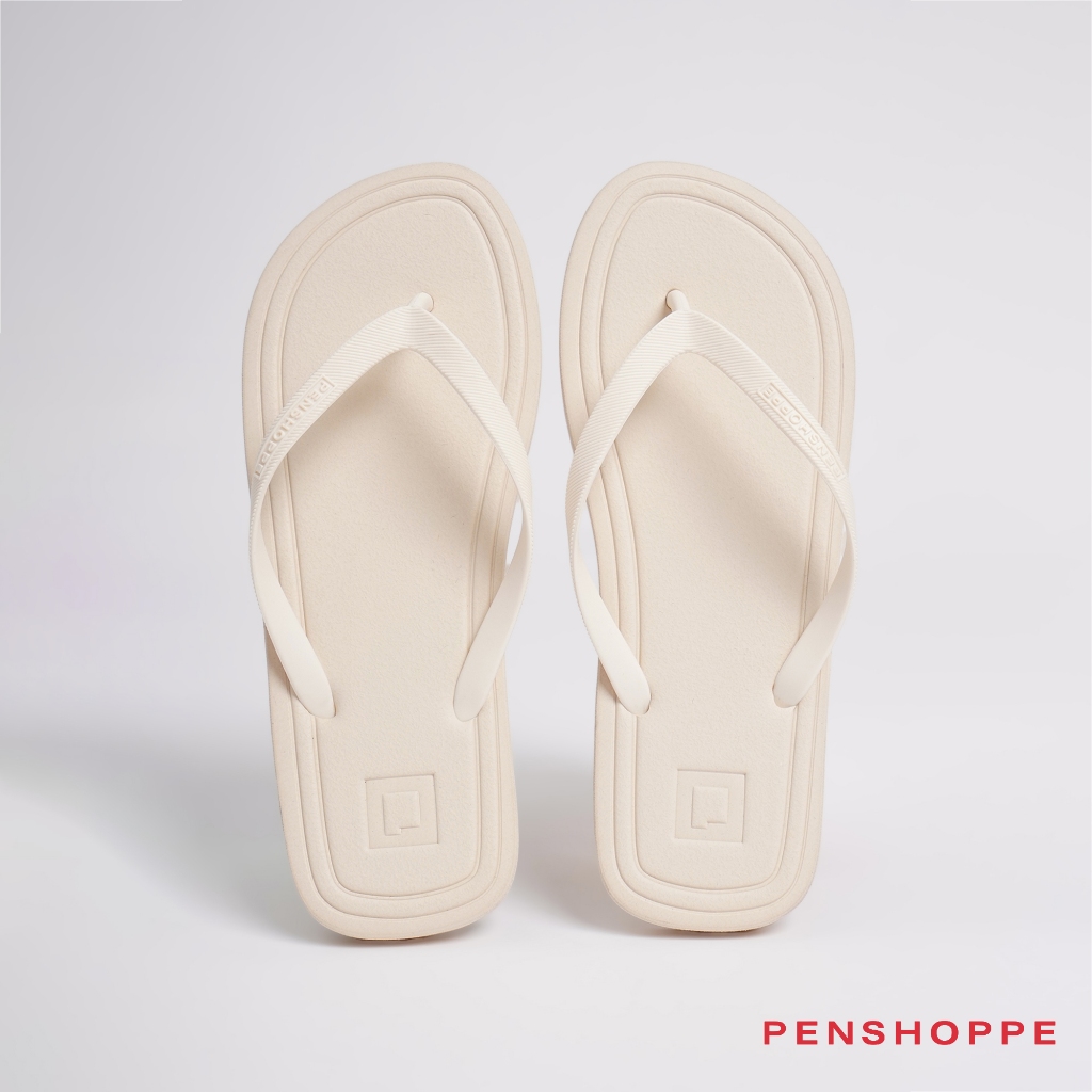 Penshoppe Slim Flip Flops Slippers With Branding For Women Cream