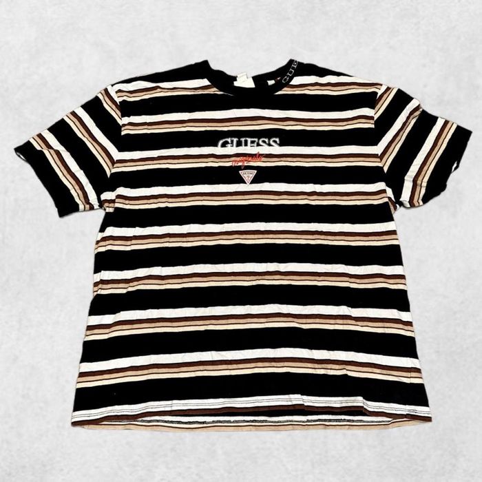 1990s Classic Embroidered Guess Logo Striped Tshirt Guess Jeans