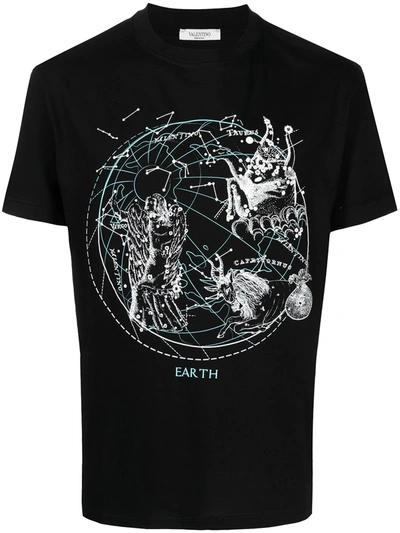 Valentino Cotton T shirt With Zodiac Map Print In Black ModeSens