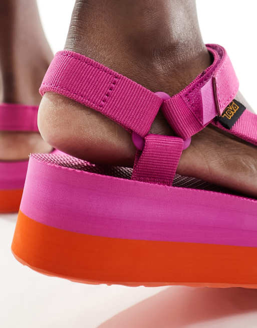 Teva flatform Universal sandals in bright pink and orange ASOS