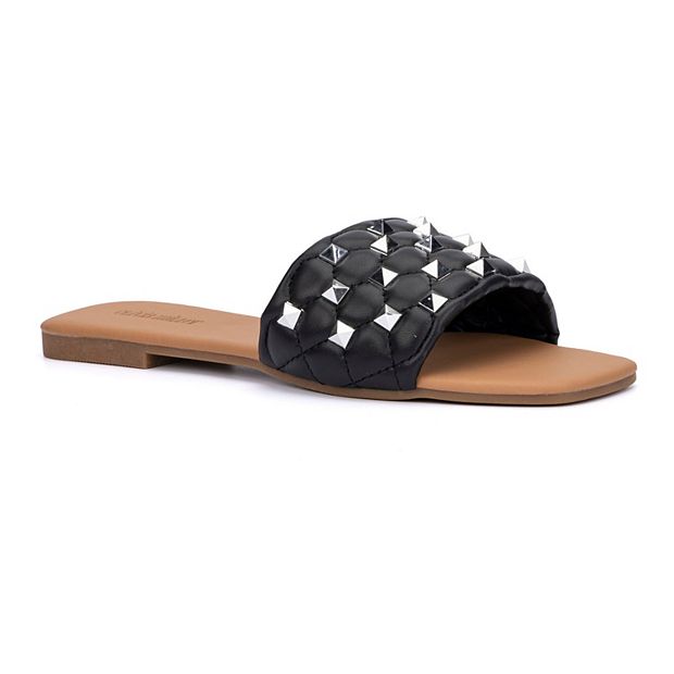 Olivia Miller Women s Stud Quilted Slide Sandals