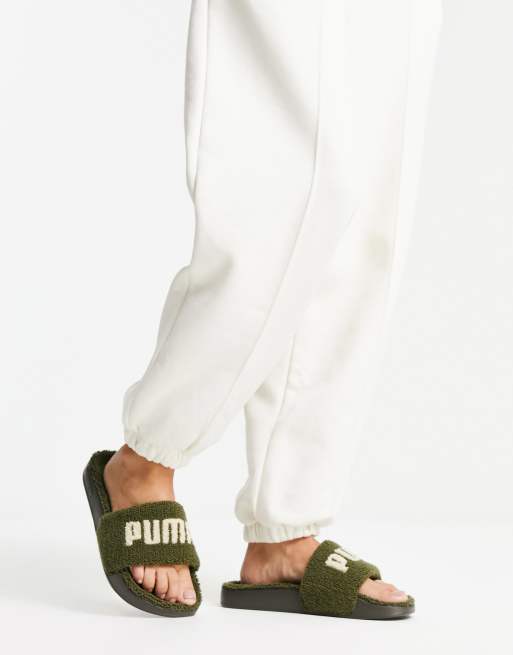 Fenty outlet slides canada, Puma sherpa slide with logo in oatmeal ASOS outlet